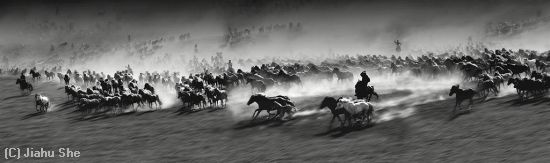 "Ten Thousand Steeds Gallop Bw"